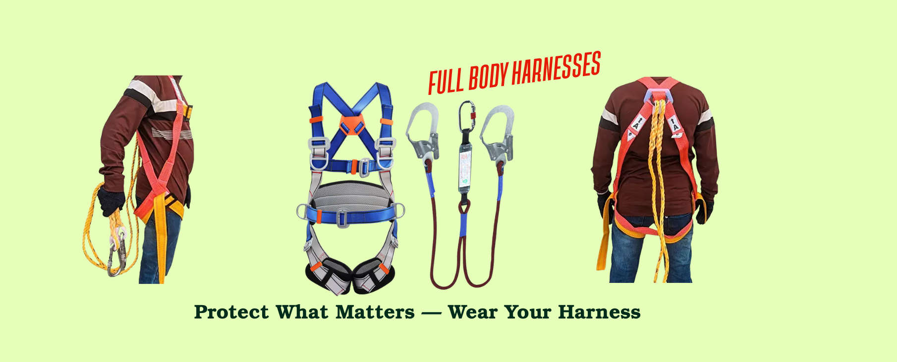 We offer a wide range of safety equipment such as Personal Protective Equipment (PPE) from Head to Toe, Complete range of fall protection system, Road Safety Equipment, Display Signages, etc., All of our products are tested and certified to meet or exceed industry standards.