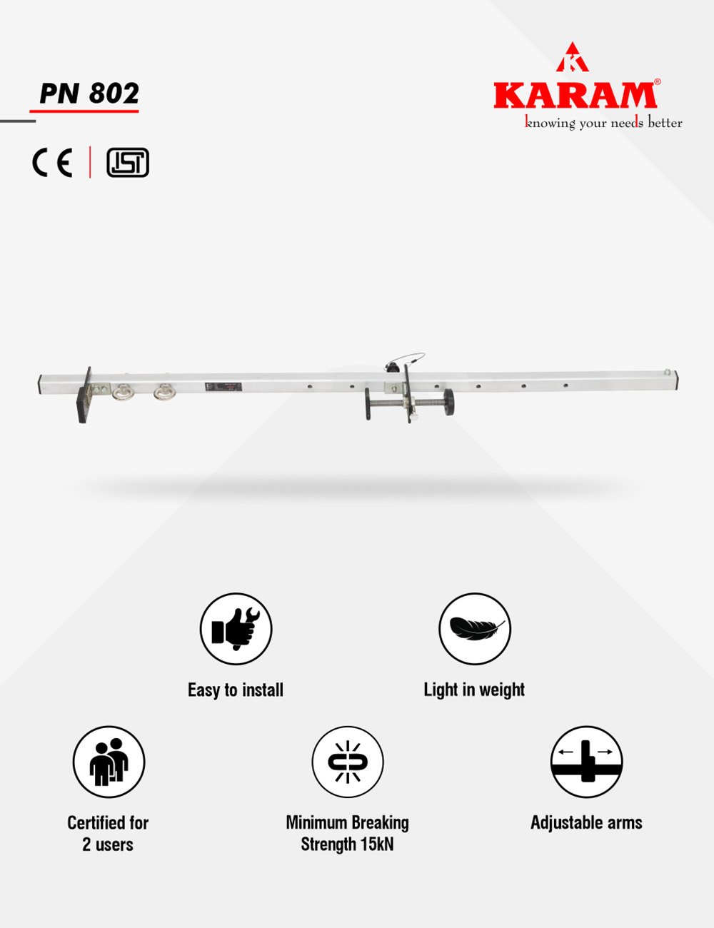 - Is provided with two separate eye bolts, enabling anchorage by two personnel at the same time